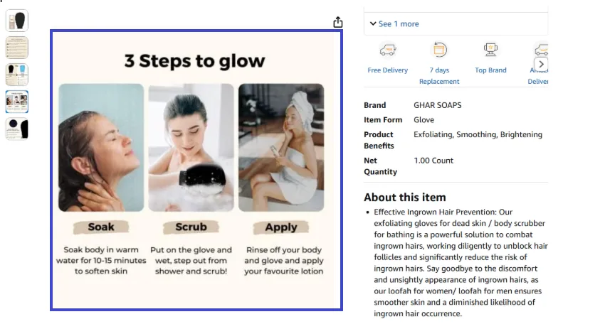 Ghar Soaps nails this by demonstrating how their exfoliating gloves can be integrated into a step-by-step skincare routine, making the process feel approachable and relatable.