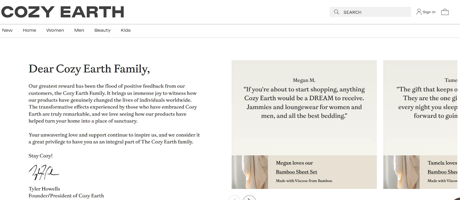 For example, Cozy Earth features customer reviews in the navigation menu, which further helps in product recommendations.