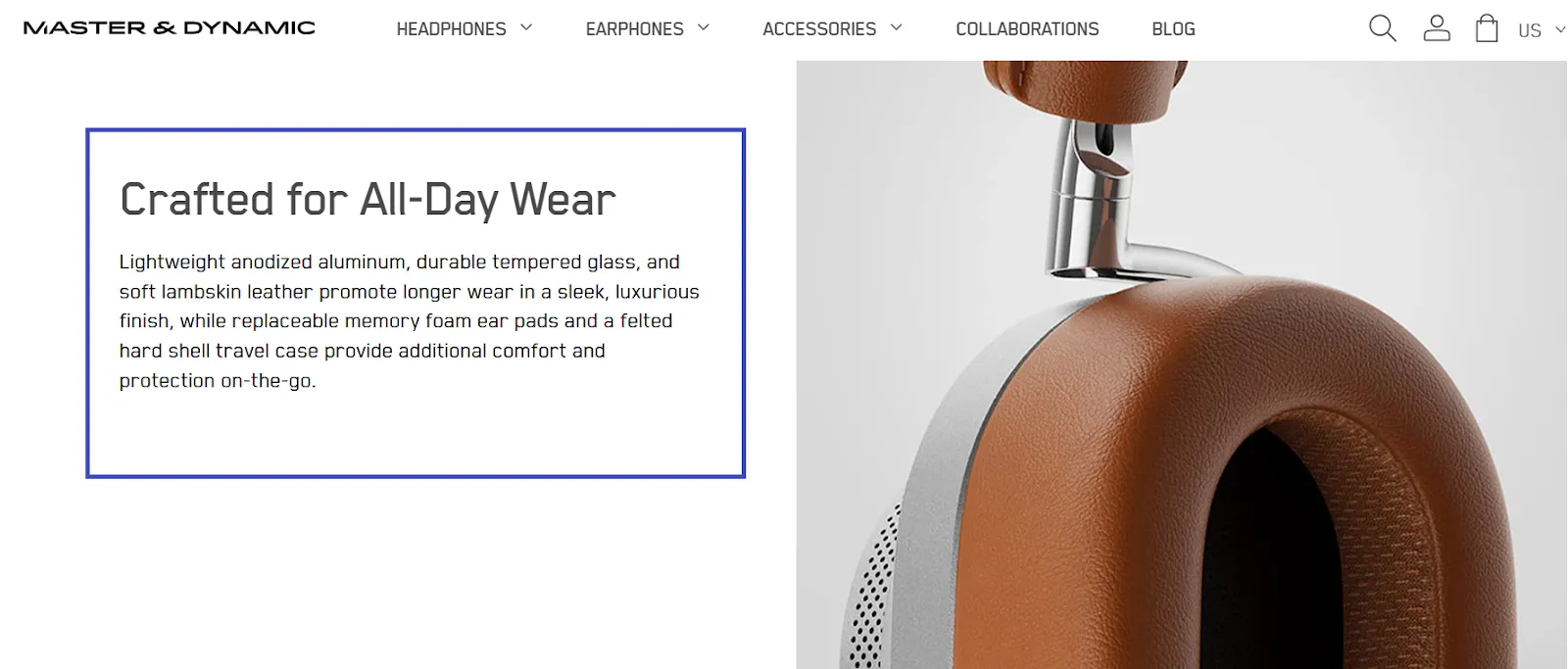 Master and Dynamics is a good example of highlighting benefits such as long-term wear and additional comfort. This not only helps in conveying how it solves the problem but also boosts buyers' confidence in the product.