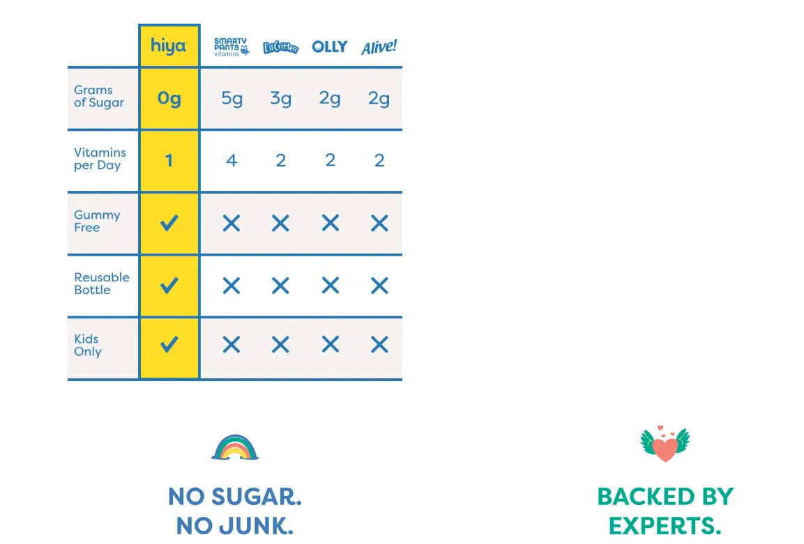 Hiya a multivitamin brand for children highlights a section where its not only highlights USP like ‘no sugar’, ‘honest ingredients’, but also shares comparison table to make shoppers understand how its different from other competitors.