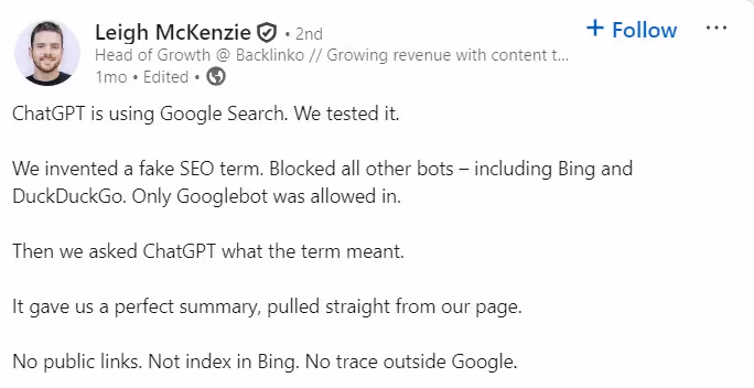 Take this example of a made-up word being brought up on ChatGPT Search, (which also uses Google Search APIs). If a marketer can make up a word and have it rank, so can you.